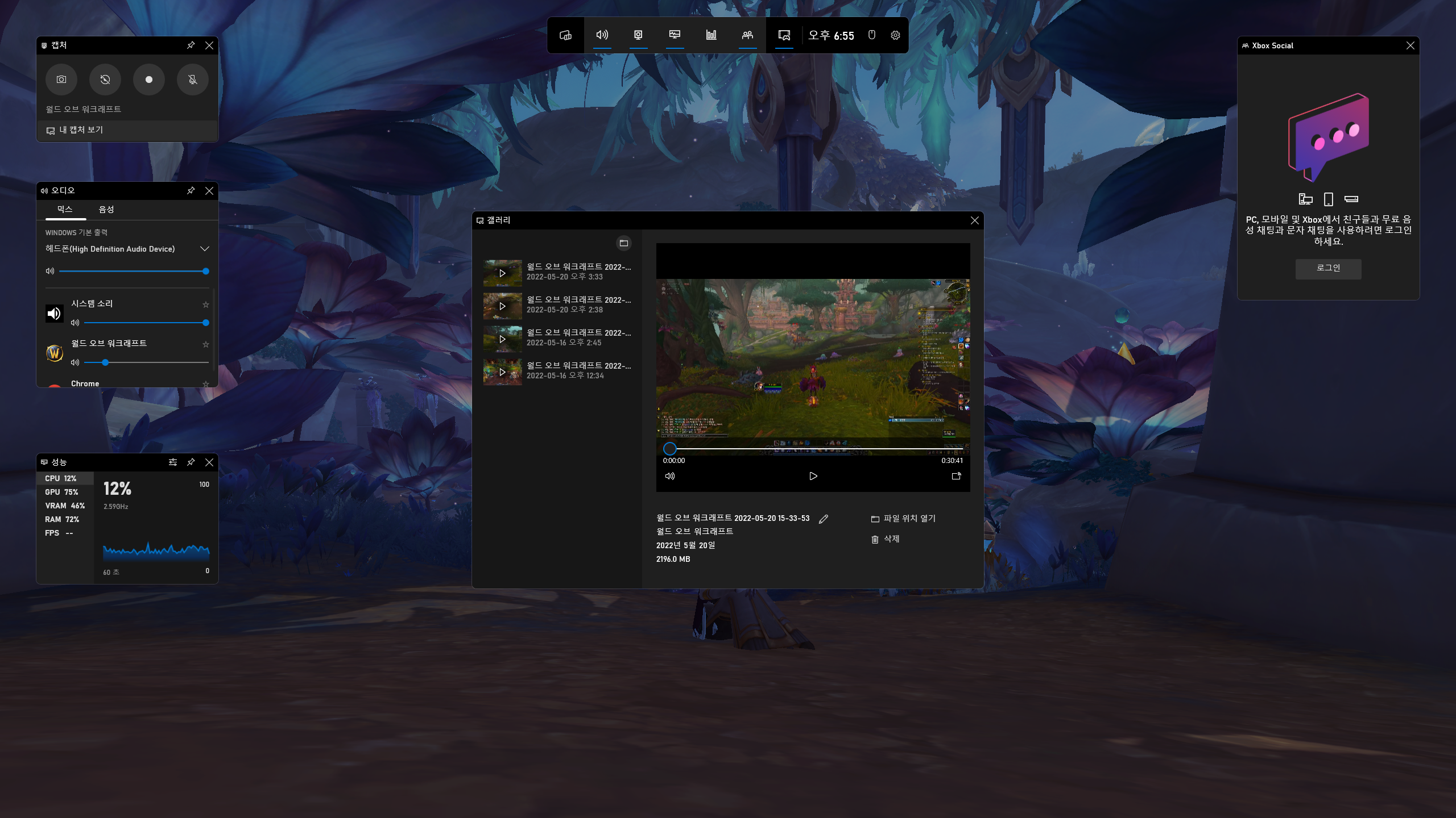 아쉽게도 와우에는 영상녹화기능을 게임내에서 제공하지는 않고 있죠...ㄸㄹㄹ