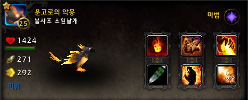 동부왕국 운고로 분화구에 가면 다양한 불의 정령이 있습니다. 가운데 화산 지대에 있습니다. 이 중에서 타오르는 정령이 마력을 잃은 불사조 재를 줍니다. 드랍율은 상당히 거지 같습니다.