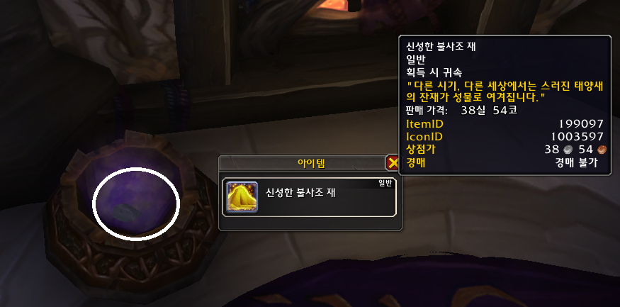 용군단 초반부터 추가된 아이템 중에 이글거리는 불사조 재라는 것이 있습니다. 이 아이템은 깨어나는 해안에 사는 불사조 몹을 잡다보면 일정 확률로 얻을 수 있습니다.