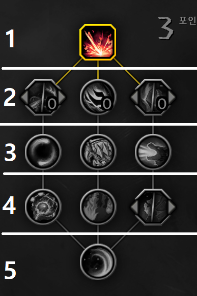 - 택1(개척자, 화염의 형상), 움직이는 불꽃, 택1(점화, 확장된 허파).