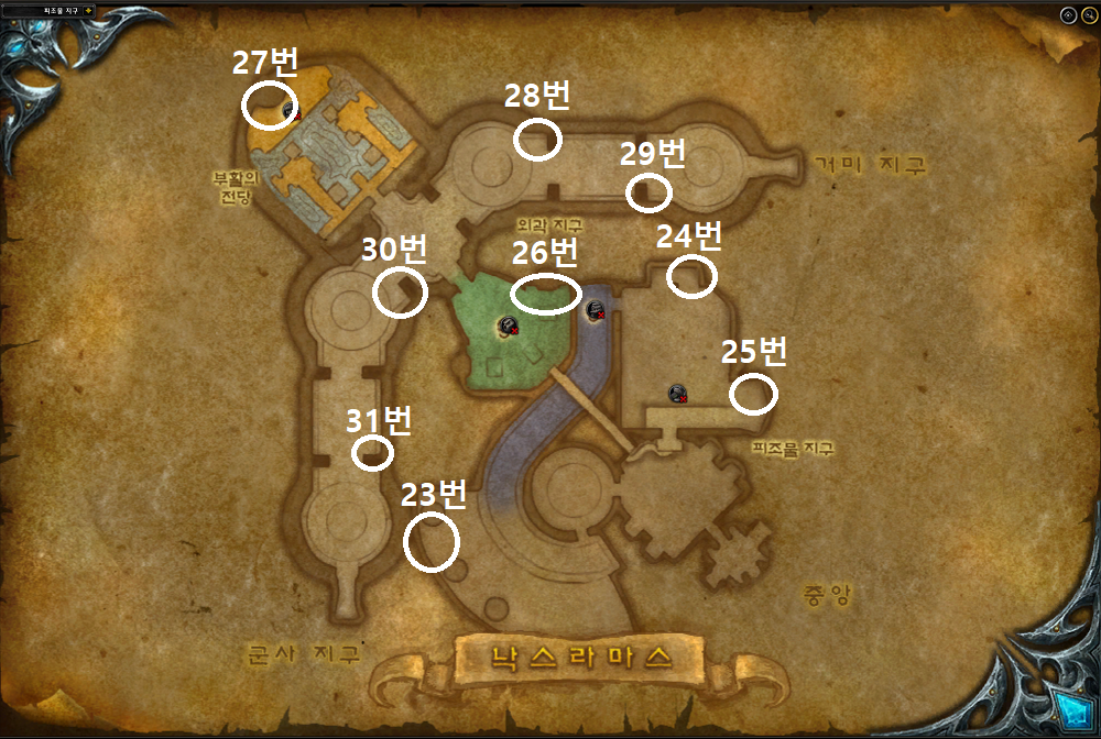 현재까지 낙스라마스의 얼어붙은 룬의 젠자리는 총 31곳으로 알려져 있습니다.
