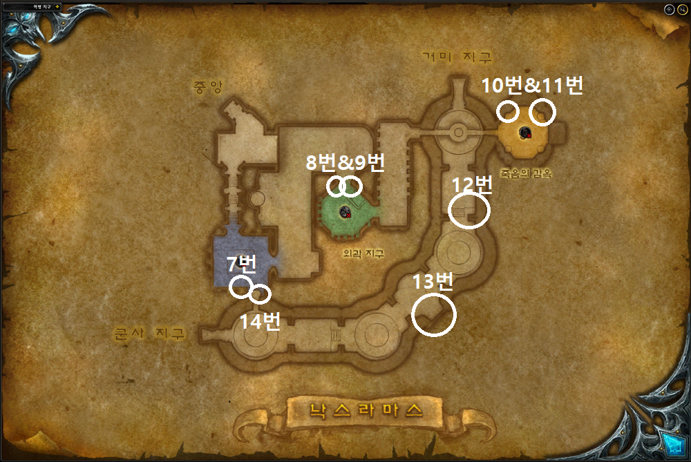 (*역병 지구 룬의 위치 및 설명을 위한 번호의 모습.)