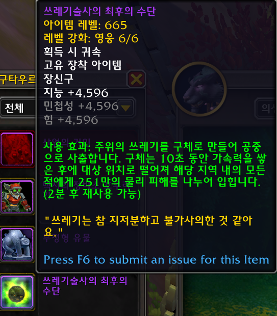 다음 아이템은 2시즌 구렁에서도 나옵니다. 스샷은 생략합니다.