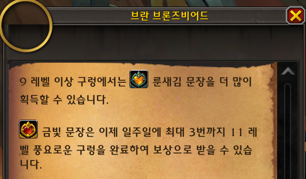 9단 클리어 시 룬새김 문장을 얻을 수 있고, 11단을 목숨이 남은 상태로 돌면 주당 금빛 문장을 21개 얻을 수 있습니다. 11단 난이도는 이전보다 쉬워졌지만 그래도 몹이 제법 아픈 편입니다.