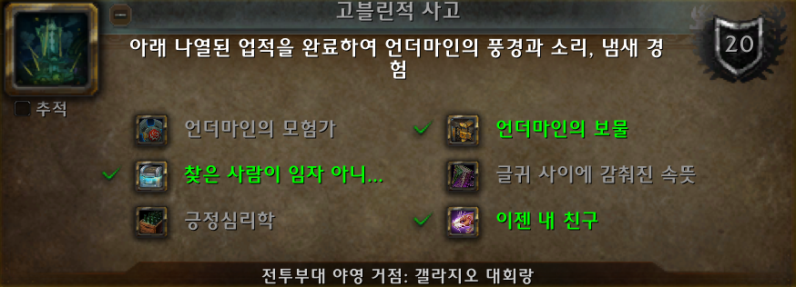11.1.0 업적 고블린적 사고 - 야영지: 갤라지오 대회랑 보상