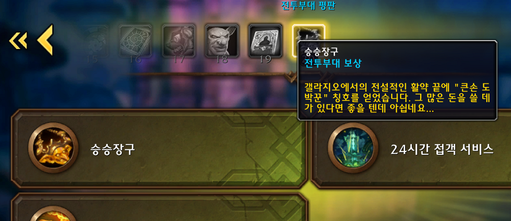 큰손 도박꾼 - 언더마인 해방전선 평판 세력인 갤라지오 충성 보상 사교회 영예 20 보상.