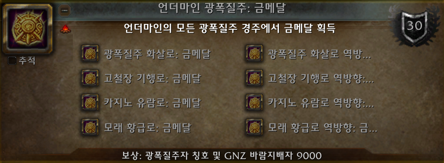 광폭질주자 - 언더마인 광폭질주: 금메달 업적 보상.