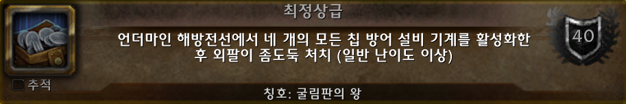 (*언더마인 해방가 칭호를 보상으로 주는 신화: 크롬왕 갤리윅스 업적의 모습.)