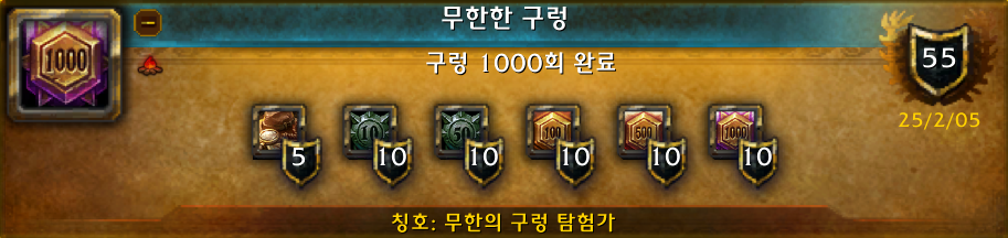 (*무한의 구렁 탐험가 칭호를 보상으로 주는 무한한 구렁 업적의 모습.)