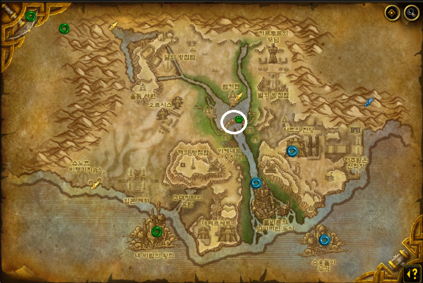인트로 퀘스트 외 남은 지역의 시작 위치.