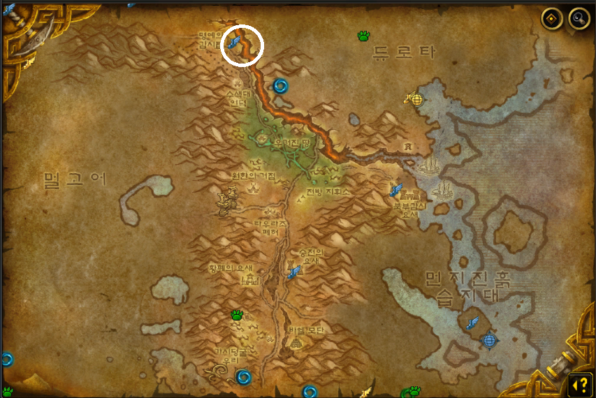 (*잿빛 골짜기 일주로의 위치.)