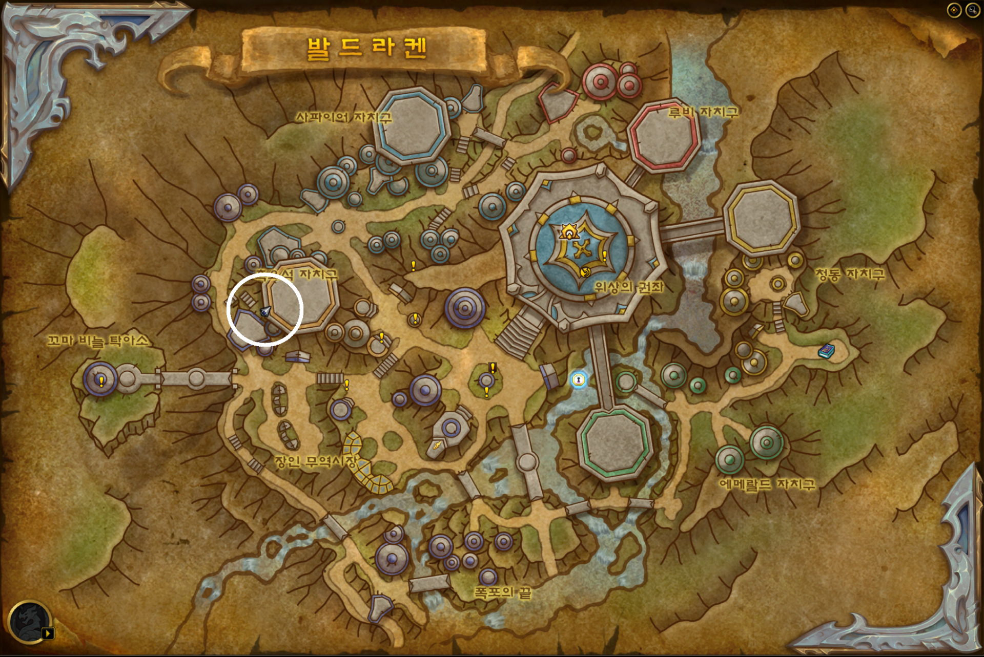 이제 칼림도어에 있는 세 필드 - 여명의 설원, 버섯구름 봉우리, 아즈샤라 - 에서 용 경주를 하면 됩니다. 각 위치는 다음과 같습니다.