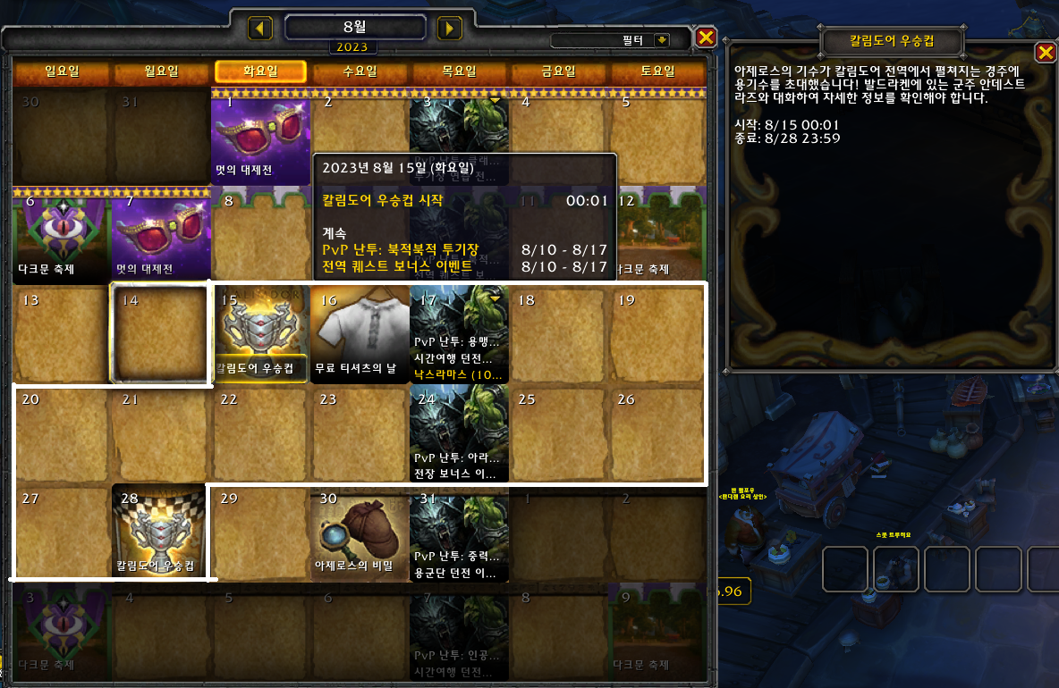 10.1.5에서 추가된 칼림도어 용경주 이벤트인 칼림도어 우승컵을 8월 15일 0시 1분부터 할 수 있습니다! 이 이벤트는 8월 29일 오후 11시 59분까지 진행됩니다.