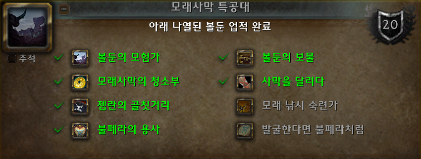 (*모래사막 특공대 업적의 모습.)