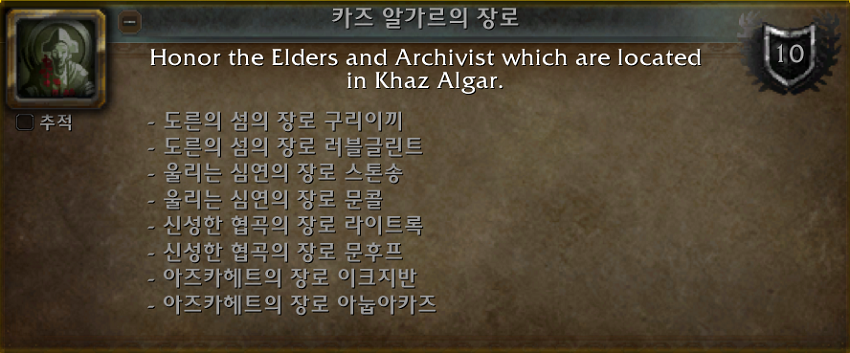 (*카즈 알가르의 장로 업적의 모습.)
