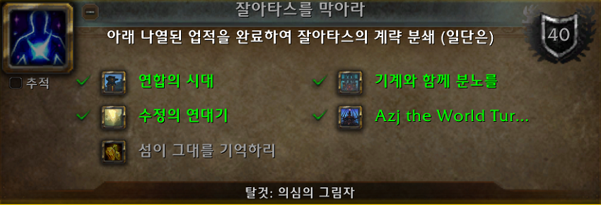 잘아타스를 막아라 - 아래 나열된 업적을 완료하여 잘아타스의 계략 분쇄(일단은).
