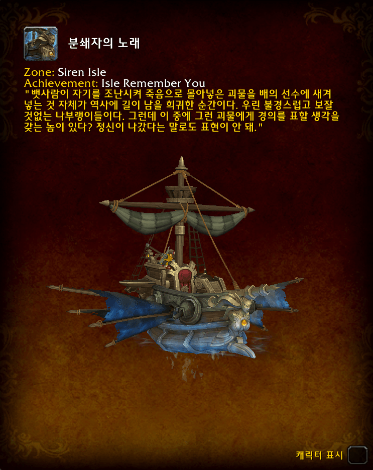 (*섬이 그대를 기억하리 업적 보상인 분쇄자의 노래 탈것의 모습.)