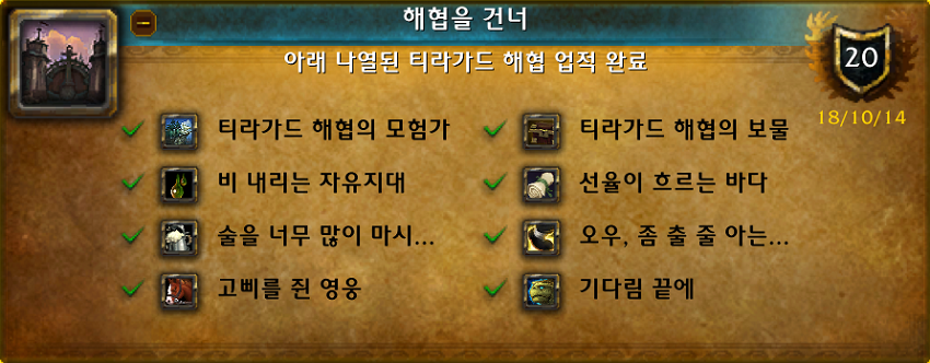 - 티라가드 해협의 모든 탐험 업적을 다 하면 됩니다. 일부는 얼라이언스 캐릭터만 할 수 있습니다.