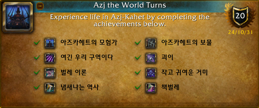격전의 아제로스 탐험 업적이 7개 추가되었습니다.