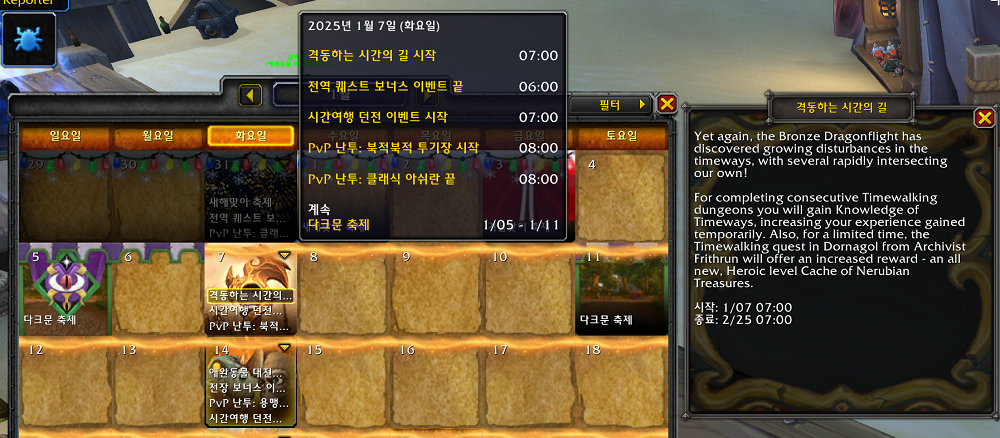 (*격동하는 시간의 길 이벤트 일정의 모습.)