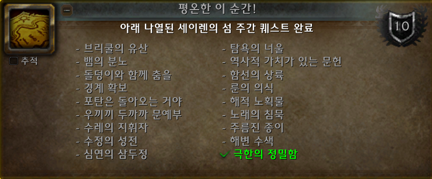 (*세이렌의 섬 정리 업적의 모습.)